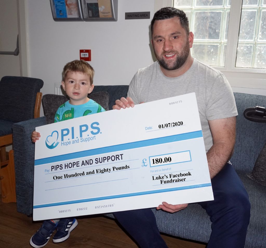 For his birthday this year, Luke again hosted a Facebook birthday asking his friends for donations to support suicide prevention. Today, Luke and his son Conan presented PIPS Hope and Support with the proceeds of £180.00